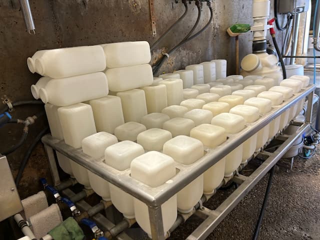 しっかり拭き取りをしているので、コスト面も考慮しプレディッピングはしていません。丁寧な拭き取りの結果、前搾りからミルカー装着までは約2分かかります。早すぎる装着はせずに、しっかり汚れと水分を落とした後、前搾りから90秒以上での装着です(その農場に適した方法はさまざまあるので、プレディッピングをしなくて良いというわけではないので誤解ないようお願いします)。