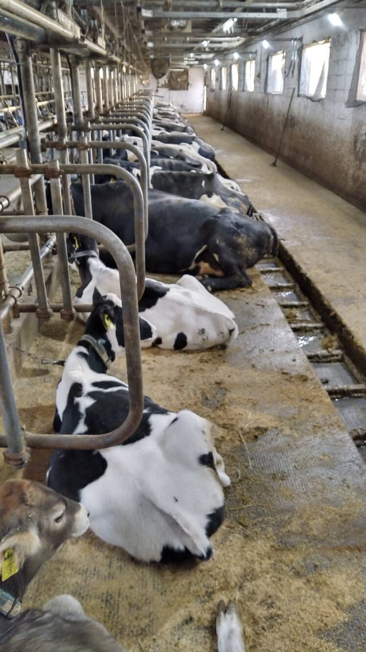 なので、就農2年目春〜現在までは、離乳〜3カ月齢くらいまで、搾乳牛舎に経産牛達と並べて管理しています。育成牛舎より搾乳牛舎の方が観察しやすく、離乳後の安定しない体調の管理に対応できるので、体型を揃えることができるようになりました。