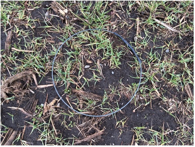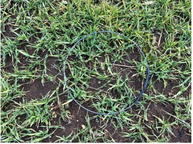 9月30日には種したC圃場は、3圃場の中では牧草の密度が低く、根張りも弱い印象です。草丈は3cmほどで、十分越冬できる10cmよりかなり短い状態です。