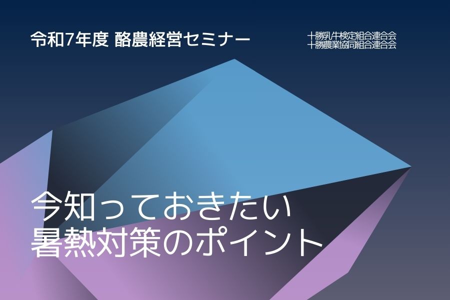 十勝乳牛検定組合連合会および十勝農業協同組合連合会は、令和8年2月3日、農協連ビルにて「令和7年度 酪農経営セミナー」を開催する。