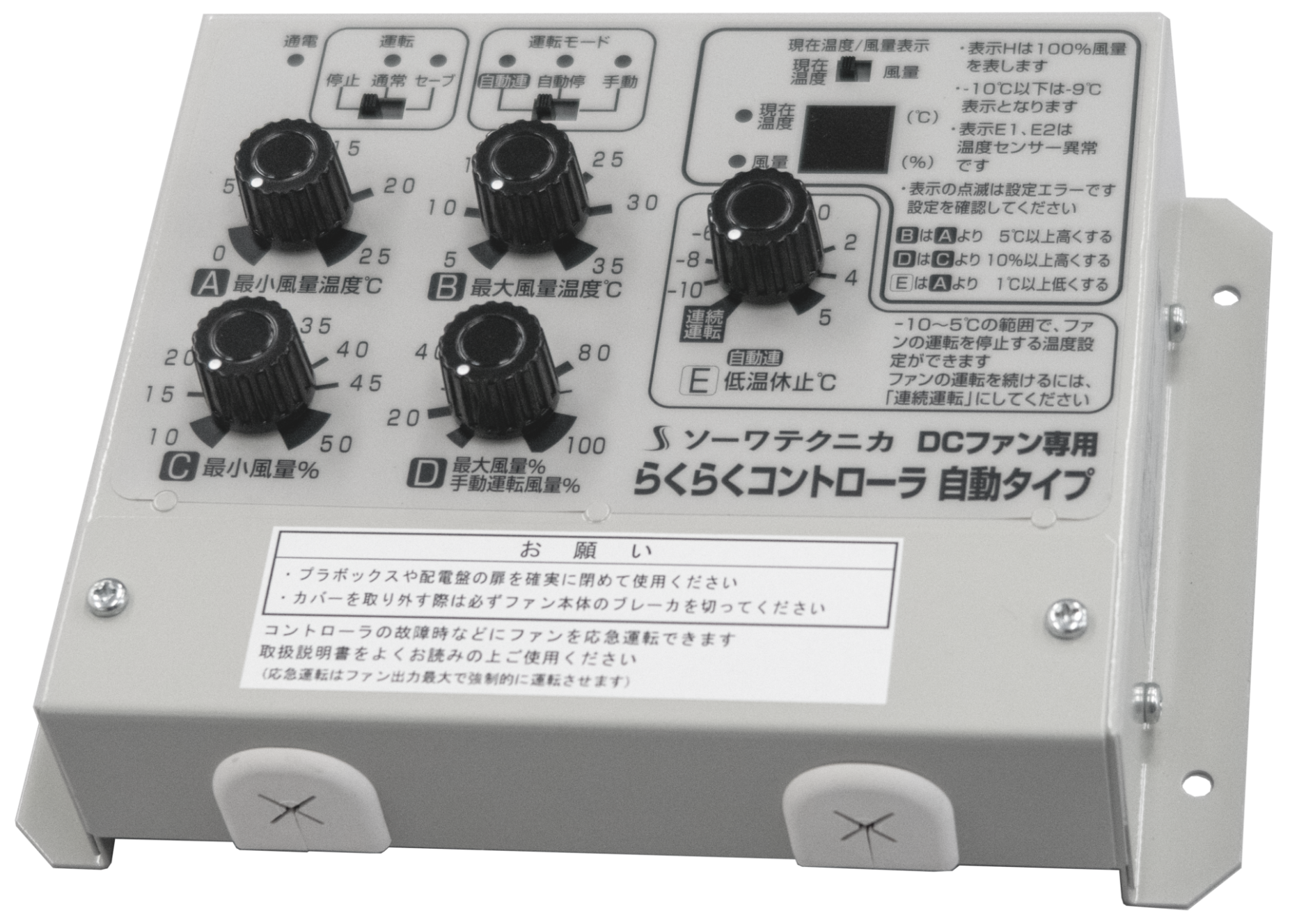 誰でも直感的に操作ができるように、いち早くツマミ操作を取り入れました。らくらくコントローラ1台で従来の制御盤では行なえなかった、きめ細かな制御が簡単に行なえます。夏の暑熱対策から冬の結露対策、疾病対策まで現場環境にあわせた制御が可能です(写真3)。