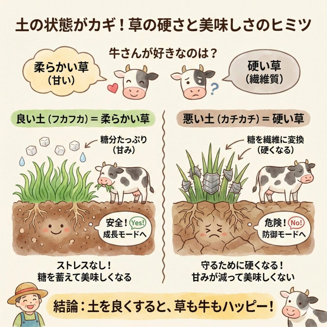 まず大前提。 「硬い草と柔らかい草、牛が食べるのはどっち?」